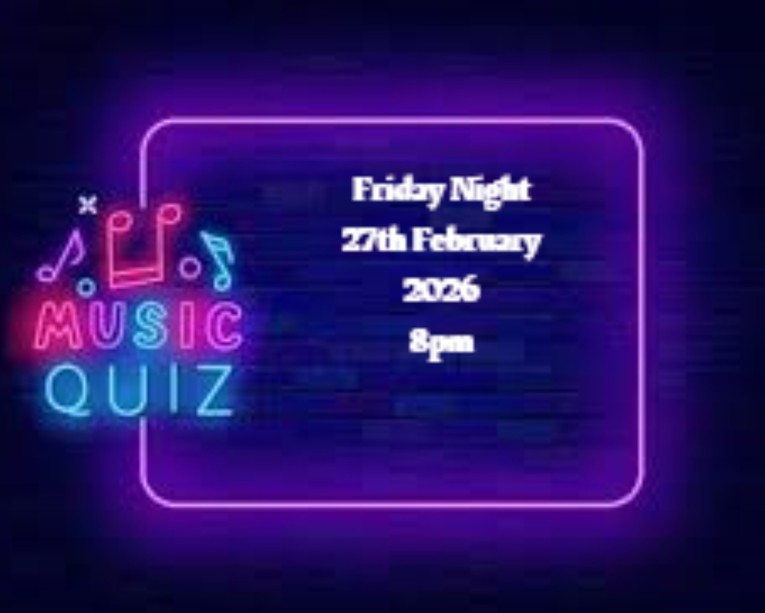 It’s the last Friday of the month quiz! and this month it’s the mega Music Quiz!! always challenging and enjoyable with winning teams changing each competition. So get your teams ready and see if this month it’s your turn to win!! Usual rules and cash prizes.